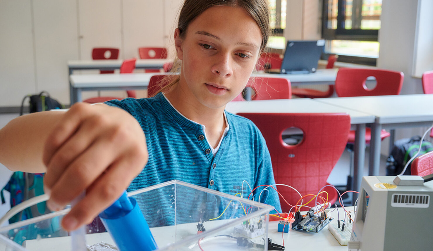 Michael Weber: Es gibt schon Themen, die eher für Jungen, und solche, die eher für Mädchen interessant sind. Es gibt aber auch Themen, die beide Geschlechter gleichermaßen ansprechen. Hilfreich ist es immer, die Jugendlichen in ihrer Erlebniswelt abzuholen. Eine Handyhülle für den 3-D-Drucker zu entwerfen und selbst zu produzieren – so etwas finden alle Jugendlichen spannend, auch Zukunftsthemen wie Robotik oder Wasserstoffantriebe. Wir haben aber noch etwas anderes herausgefunden: Selbst „harte“ Themen wie Elektrotechnik, die normalerweise stark männlich besetzt sind, lassen sich durch biologische, medizinische oder gesellschaftliche Bezüge so aufwerten, dass auch Mädchen darauf anspringen. Ein Beispiel: Wenn wir fragen „Wie spannend findest du es, mehr darüber zu erfahren, wie eine Roboterhand funktioniert?“, dann ist das tendenziell eher für Jungen interessant. Wenn wir die Frage aber geringfügig abwandeln – „Wie spannend findest du es, mehr darüber zu erfahren, wie eine Roboterhand einer menschlichen Hand nachempfunden ist?“ – dann holen wir plötzlich auch die Mädchen ab. Übrigens, ohne dass das Interesse der Jungen dadurch nachließe.