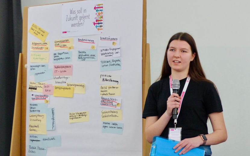 Elli, 17 Jahre, und Eddie, 15 Jahre, erläutern im Interview ihre Forderungen zur Zukunft der Bildung, die sie mit anderen Jugendlichen erarbeitet und in einem Positionspapier zusammengefasst haben.